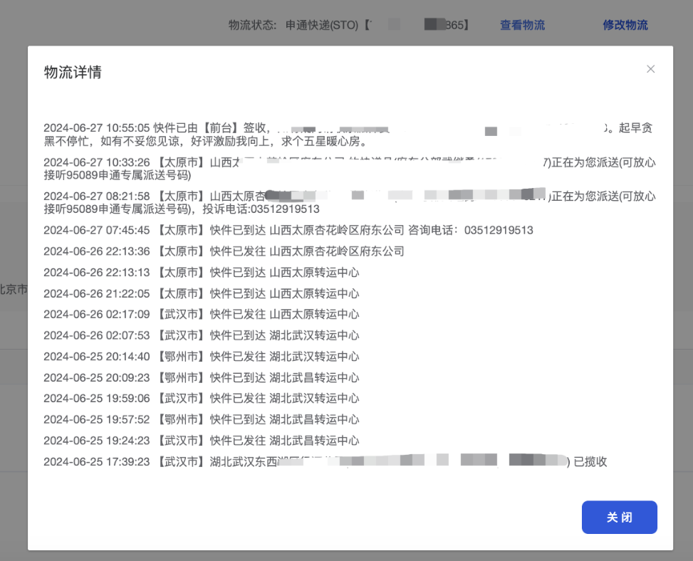 查看物流可查看物流信息:需配置物流查询接口(路径:中台系统--附件配置--物流信息查询配置,需对接芸签物流),每次查询会扣费;